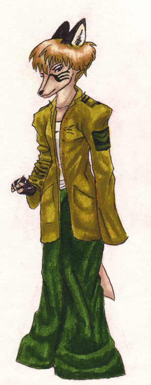If memory serves she got those face tatts because I messed up the inking and was trying to save it. I didn't draw them again but they're kinda cool. My friends and I used to "tailor" oversized jackets at the waist like that with safety pins. Big sleeves were the thing though.