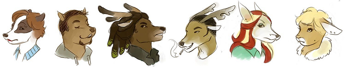 Anthrofied versions of some of the characters in my story. My friend Vince helped pick out the animals.