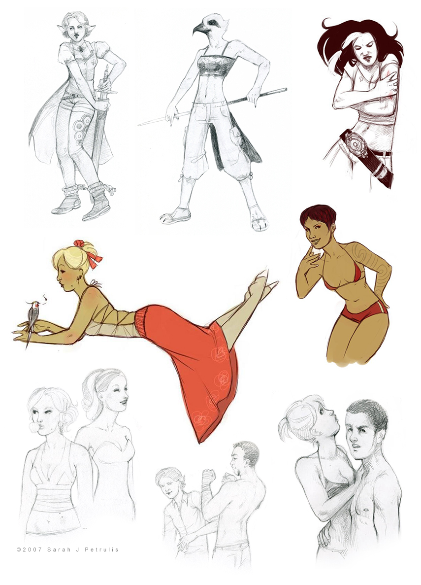 I don't remember who the elf chick is but the osprey anthro was Haze's character Chosun, and the black and white haired gal was Amy's character whose name escapes me (Jessie?). The rest are characters from my story.