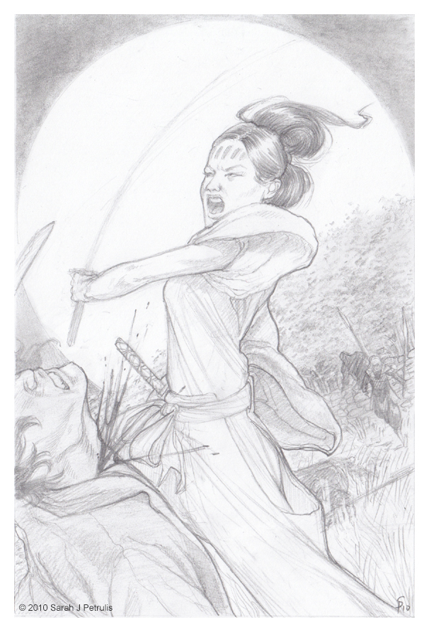 I got really into watching samurai movies that year as well as the comic Vagabond so a lot of images like this were knocking around my head. I didn't reeeallly understand how to draw kimono yet and it shows.