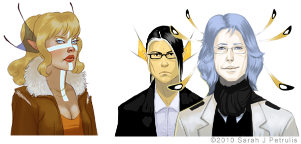 Header artwork I made of my characters on an RP board. It was this big shared universe of sci-fi/fantasy fish people called the Calanthra.