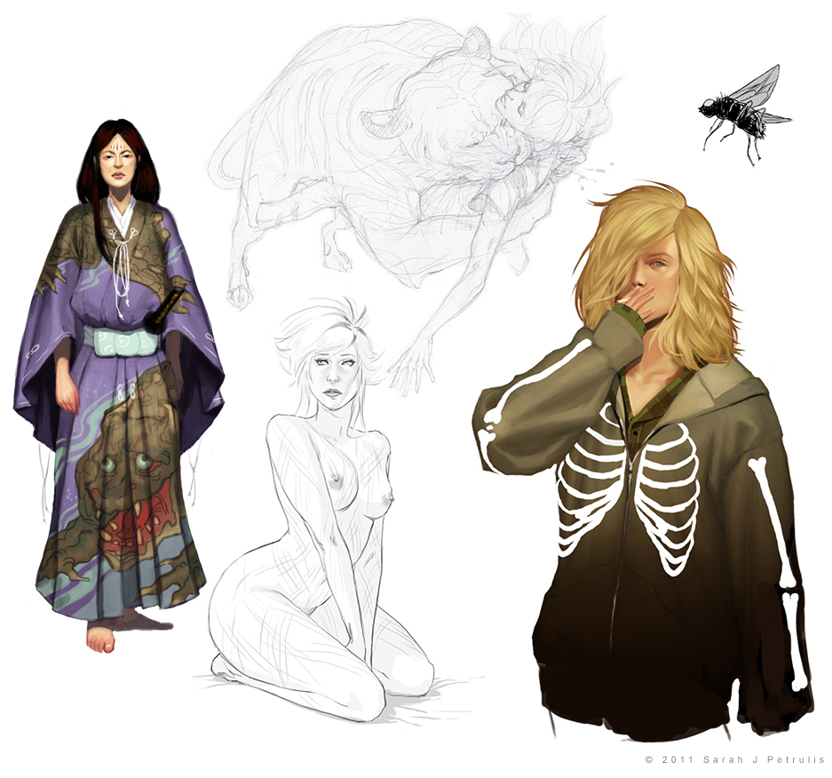 Akiko in a fancy outfit, Roman's death fantasy, Ex and Roman pin ups, and a flyyyy.